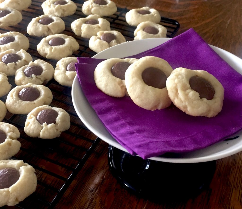 Mr. Bhaer always brings Meg’s twins chocolate drop candies. And so, I made these treats into “Vanilla Cookies with Mr. Bhaer’s Chocolate Drops.” So. Good.