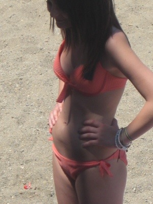 But I have not see one woman wearing them on the beach. While some older women wear one-piece suits, young and old alike most often wear bikinis. And no, you don’t have to have a lovely, youthful form, like this, to sport your bikini.