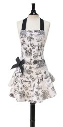 ($14.99) a few years ago, and I always get compliments on it. I wear it to dress up denim jeans and a black turtleneck for my casual gatherings. It’s also cute enough to slip in and out of when you’re wearing that little black dress for your more stylish gatherings. The bow—which I found a little too cute for my tastes—is attached with a safety pin and easily removable. Also look for other Jessie Steele Aprons for Women