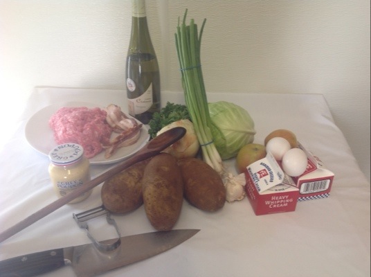 Before we knew it, we were buying cabbage, bacon (the fattier the better, he said), potatoes, Dijon mustard, cream, and a few other ingredients for a dish that ended up being of Alsace-Burgundy inspiration.