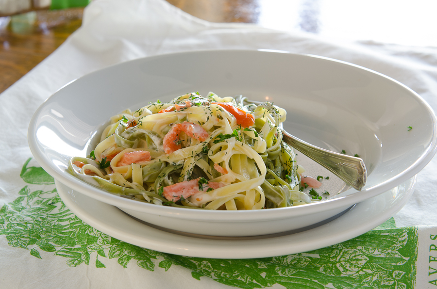 I’ve been craving something that makes spring and France feel a little closer. Looking through my fave recipes, I realized I hadn’t made this dish for ages: Pasta with Salmon and Crème Fraîche.