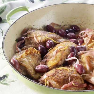 Olive-Prosciutto Chicken: I traditionally make this in my braiser, but you can also make it in a slow cooker.