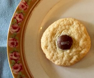 Chocolate drops make an excellent addition to butter cookies. Nothing against chocolate kisses, but I personally prefer the cookie-to-chocolate ratio of chocolate drops. I also think the flatter drops are easier to bite into than the kisses.