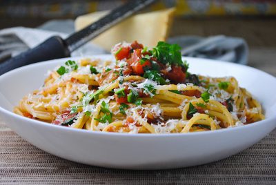 Spaghetti all’Amatriciana. Something you can make in 20 minutes, with items you likely have on hand. Photo by Katherine Martinelli via Flickr.