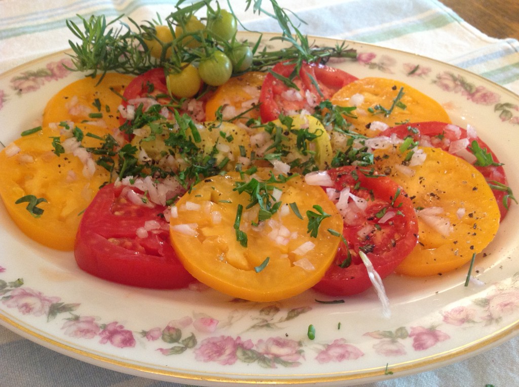 No link or recipe needed for this, but there is a story: On my first stay in France as a high school cultural exchange student, the maman of the family served me a salad much like the one above. Though it was so simple, I’d never really tasted anything like it before—and it’s the fines herbes that bust open the world for me. There’s something that this mix of herbs (parsley, chives, and tarragon or chervil) does to the tomatoes that’s just so….French. Simply make your favorite vinaigrette (or make mine), and bring on the fines herbes and finely chopped shallots. Oh-and use the best homegrown tomatoes you can buy, of course.